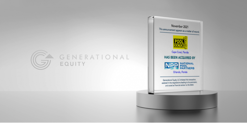 Generational Group, a leading mergers and acquisitions advisor for privately held businesses, is pleased to announce the sale of its client Pool Doctor Service & Supplies, Inc. to National Pool Partners. The acquisition closed November 9, 2021.