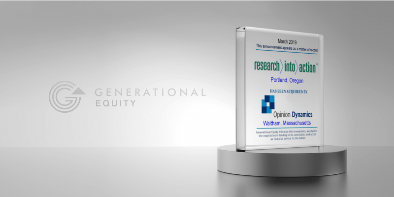 Generational Group, a leading mergers and acquisitions advisor for privately held businesses, is pleased to announce the sale of its client, Research Into Action Inc., to Opinion Dynamics Corporation. The acquisition closed March 1, 2018 and details were not disclosed.