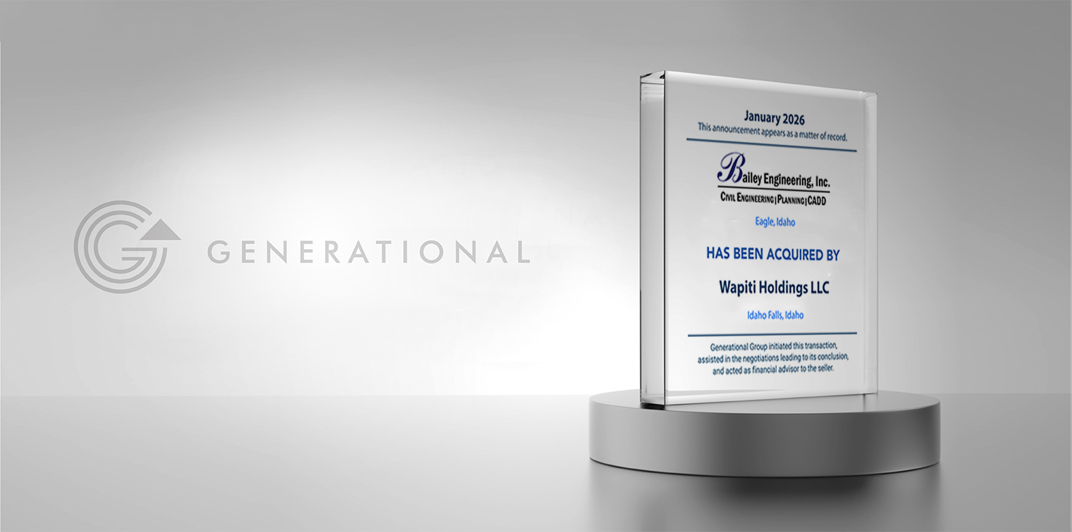 Generational Group Executive Managing Director, M&A, Western Region – Lori Galloway, and her team led by Senior Managing Director, M&A, Fred Zweifel successfully closed the deal. Senior Managing Director, Doug Morrow and Senior M&A Advisor, Ken Beckrich established the initial relationship with Bailey Engineering, Inc.